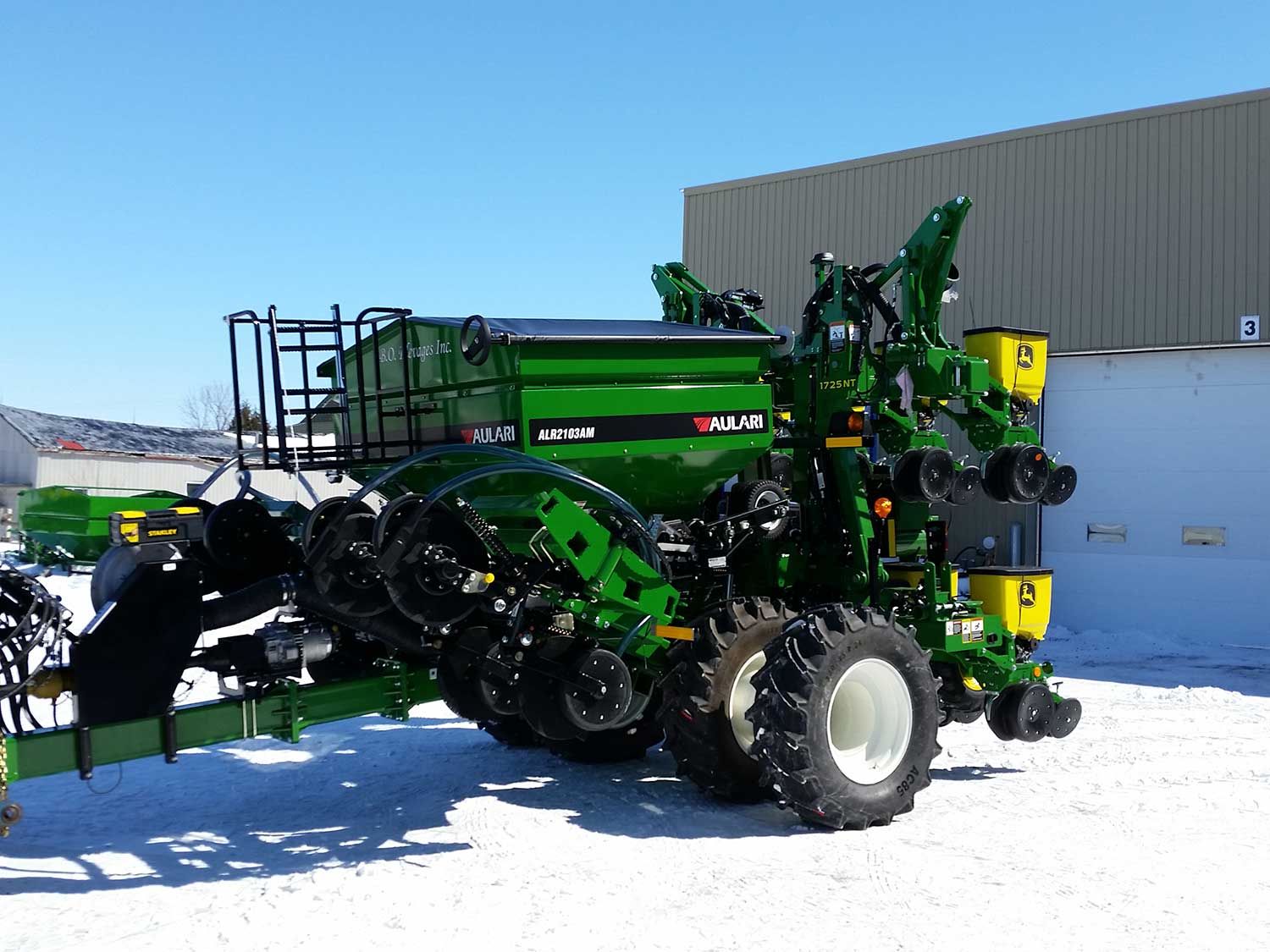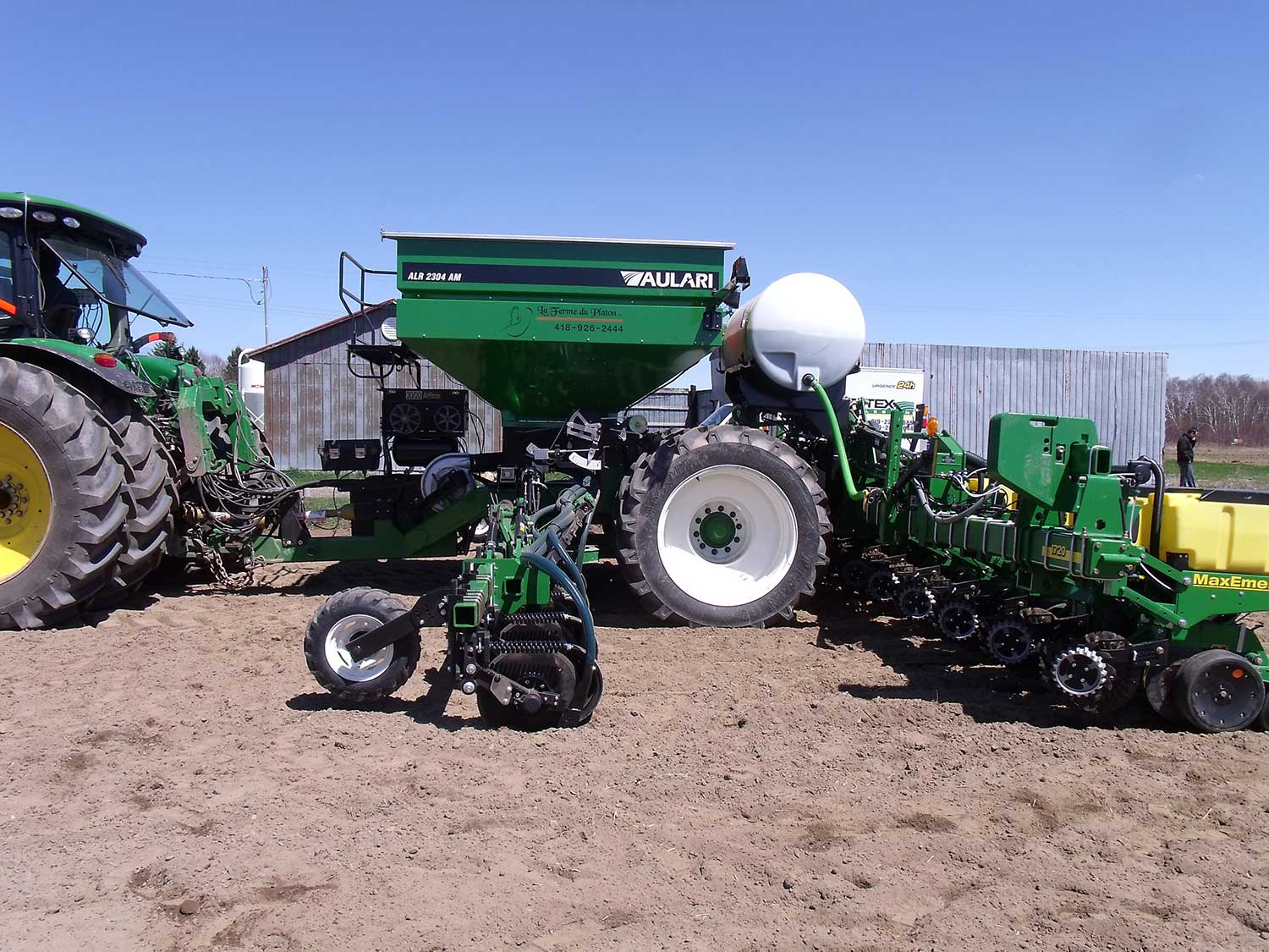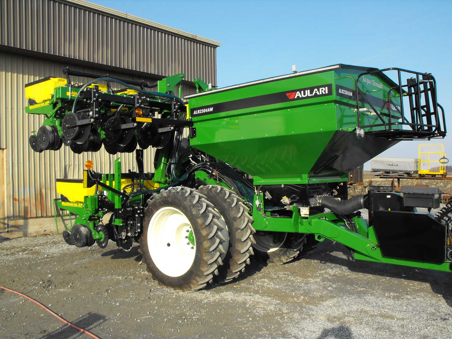 L’applicateur pneumatique ALR2304AM est une machine TOUT EN UN très versatile et de grande capacité. Il peut être équipé d’une barre avant d’application d’engrais avec disques. On peut lui installer des unités pour le travail en bande, un semoir à céréales, un planteur de 8 ou 12 rangs et une rampe de 18 m (60’).