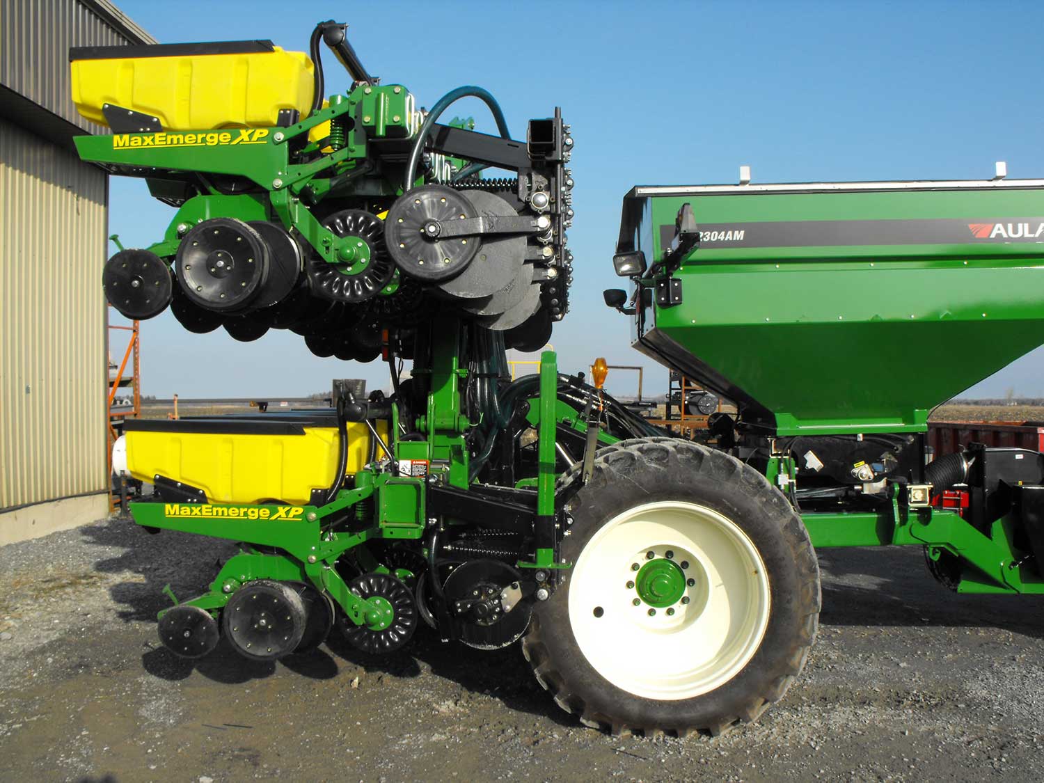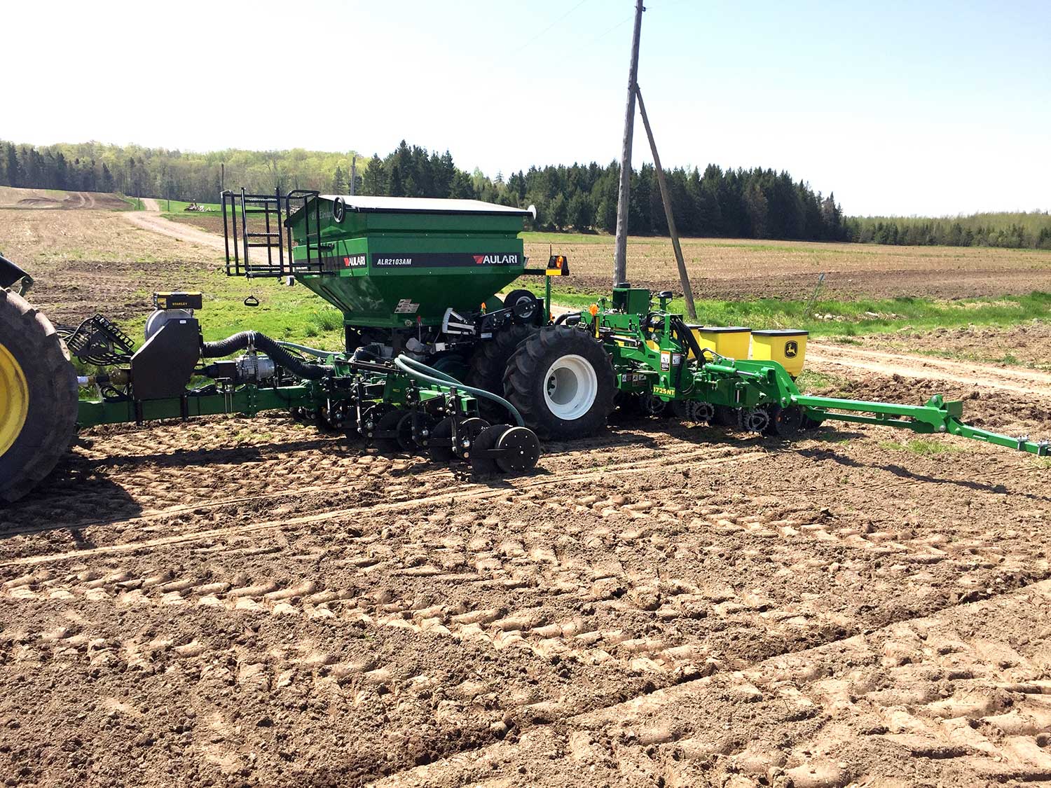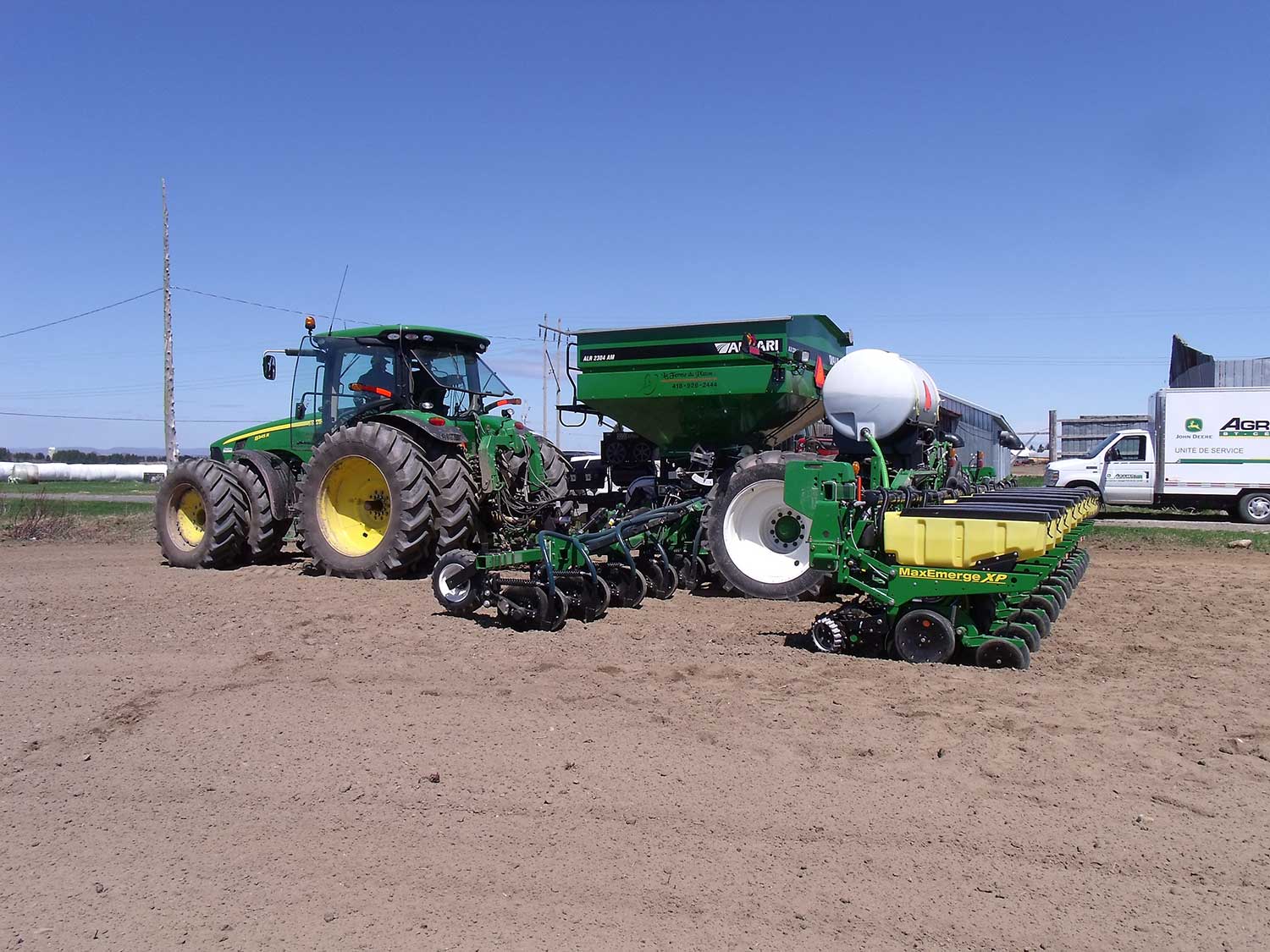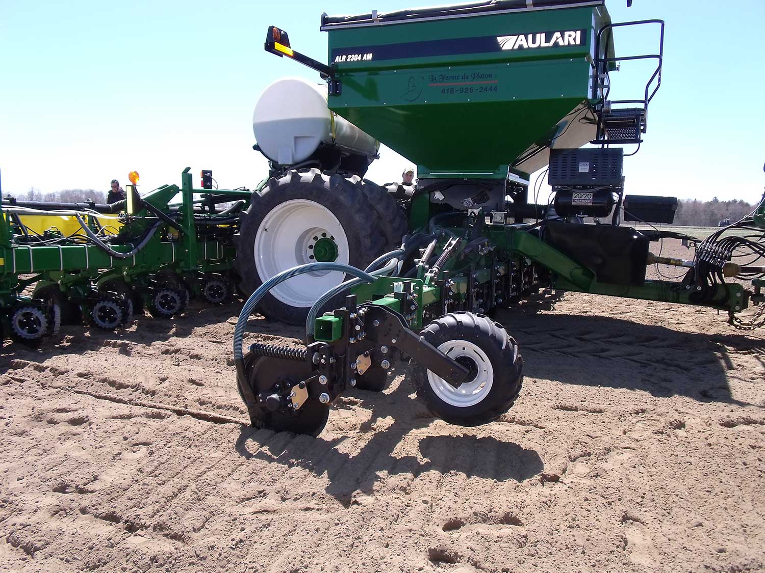 L’applicateur pneumatique ALR2304AM est une machine TOUT EN UN très versatile et de grande capacité. Il peut être équipé d’une barre avant d’application d’engrais avec disques. On peut lui installer des unités pour le travail en bande, un semoir à céréales, un planteur de 8 ou 12 rangs et une rampe de 18 m (60’).