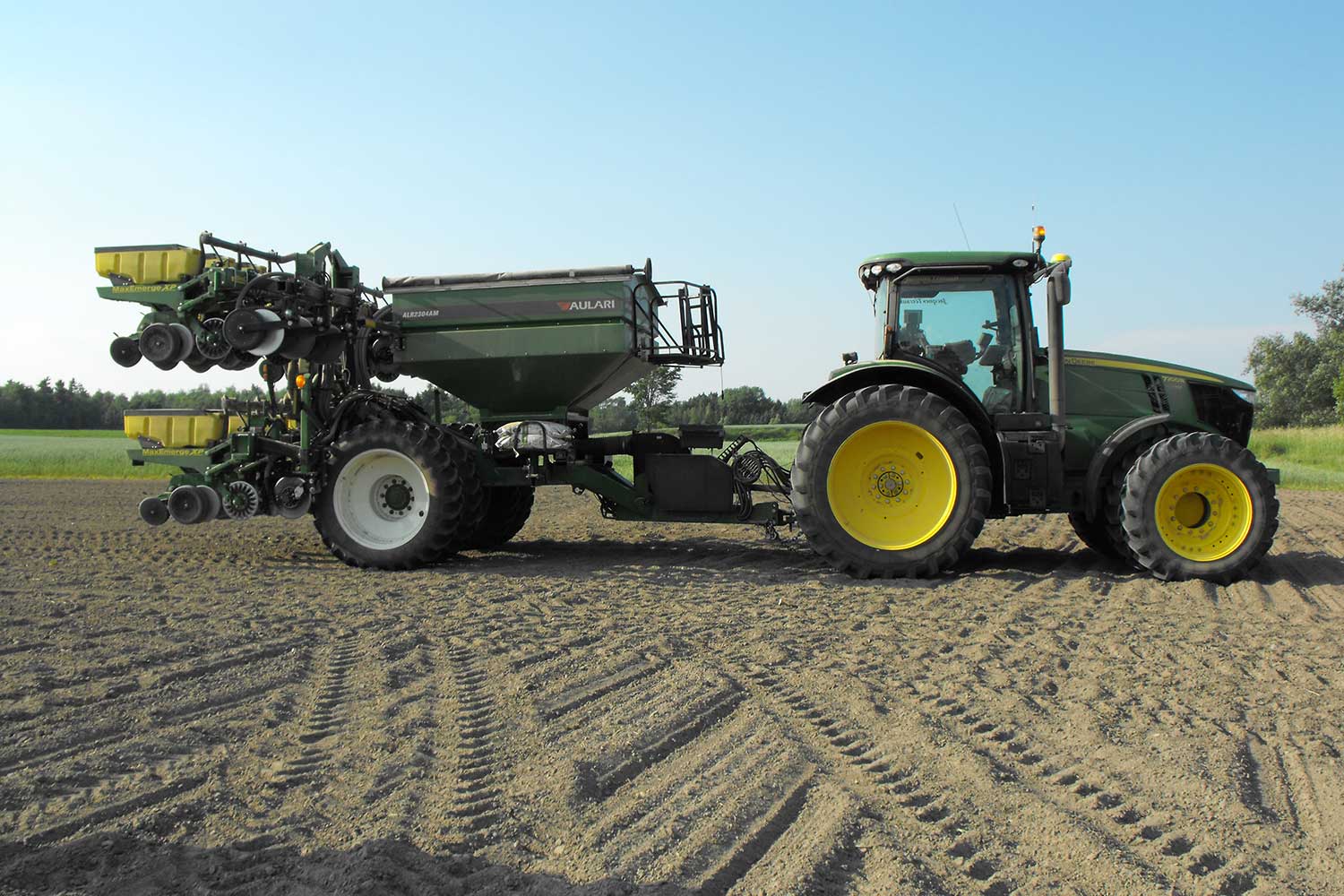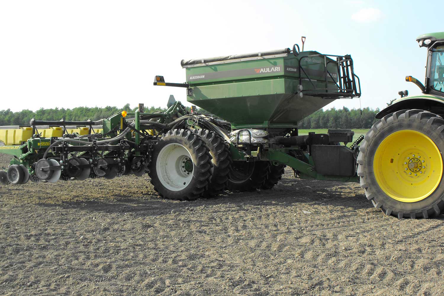 L’applicateur pneumatique ALR2103AM peut mettre en place l'engrais avec une grande précision. C’est un outil multifonctionnel. Avec son attache 3 points arrière on peut le jumeler avec : un semoir à céréales, un planteur à maïs ou à soya, une rampe d'épandage de 18 m (60’), un équipement de travail en bande.