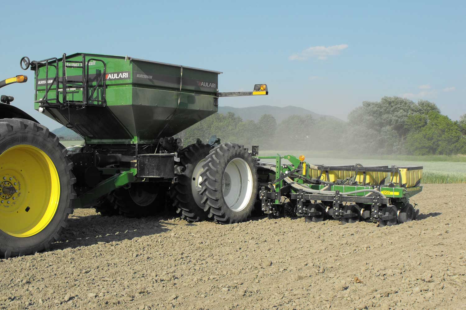 L’applicateur pneumatique ALR1500P pour engrais granulaire et semence peut être monté sur les relevages hydrauliques 3 points avant ou arrière.