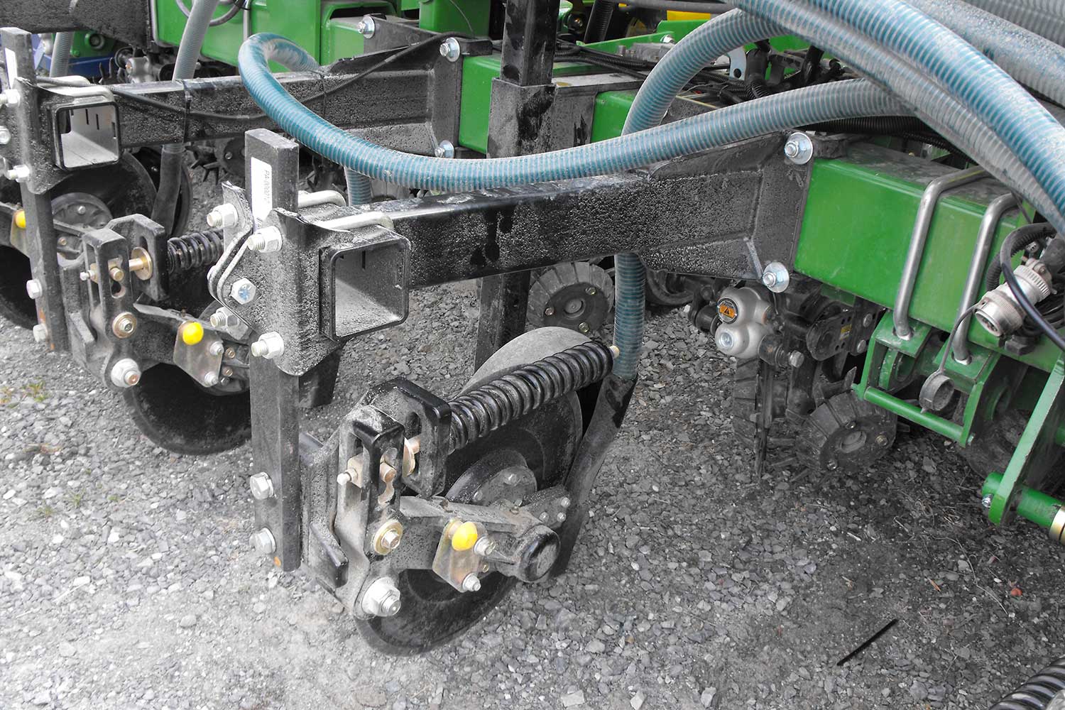 Ajustement facile du disque : enlever la cheville d’ajustement de profondeur et laisser descendre la roue de jauge pour un accès sans obstruction au disque !