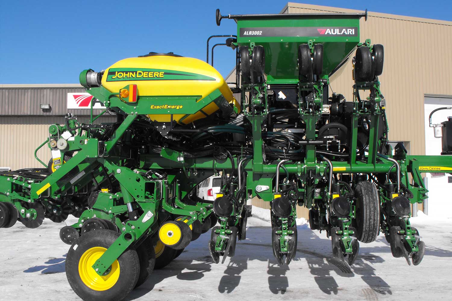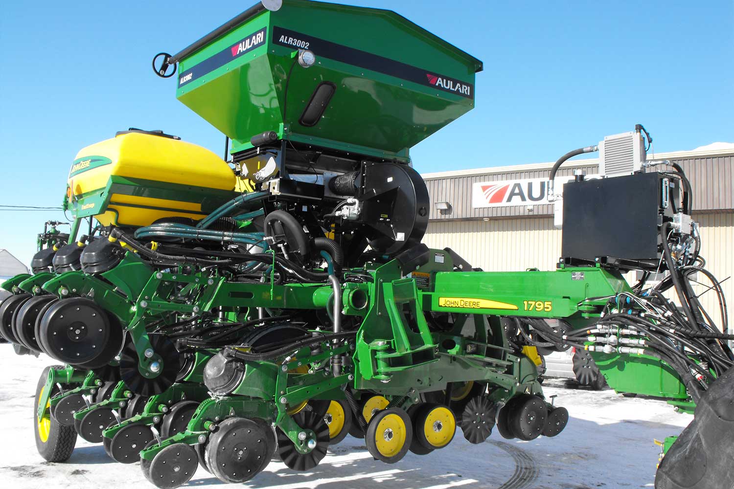 L’applicateur pneumatique ALR3002 pour engrais granulaire ou semence de soya peut être installé sur un planteur de 6, 8, 12, 16, 24, 32 ou 36 rangs. Il permet de reculer facilement dans les pointes de champs et de toujours avoir en vue le système de dosage.