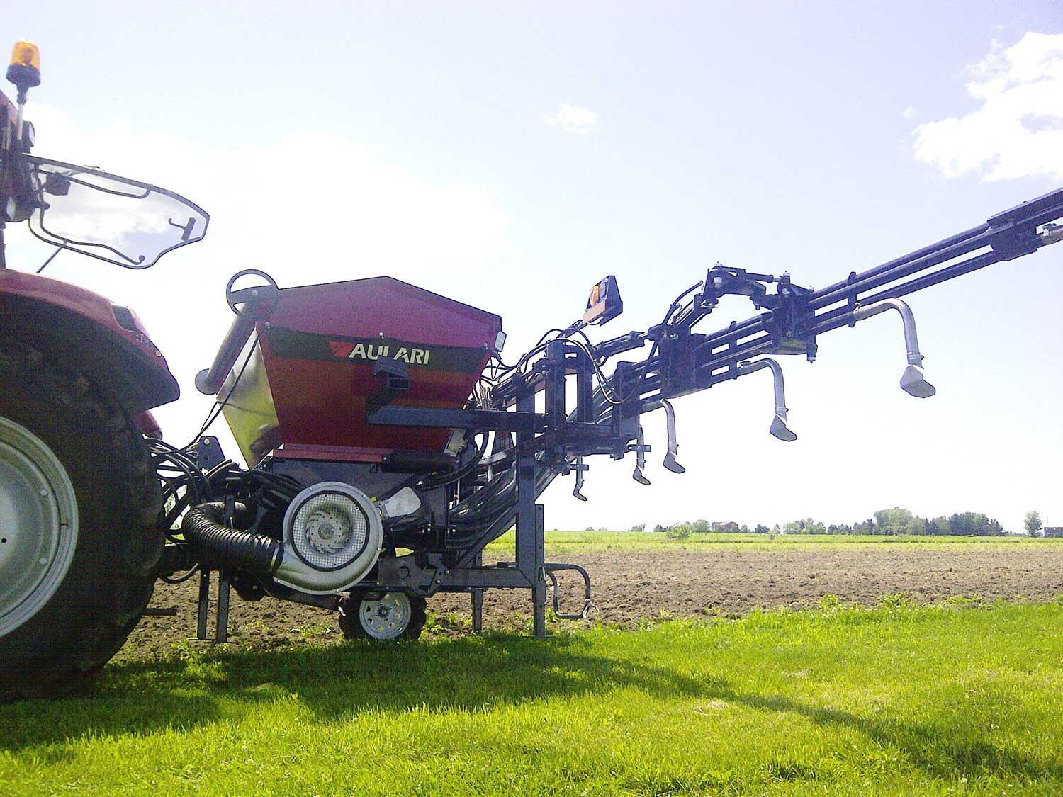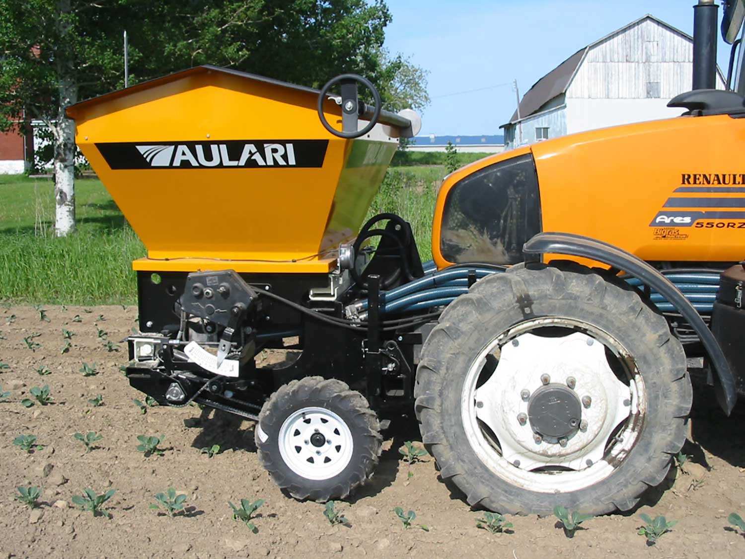 L’applicateur pneumatique ALR1500P pour engrais granulaire et semence peut être monté sur les relevages hydrauliques 3 points avant ou arrière.