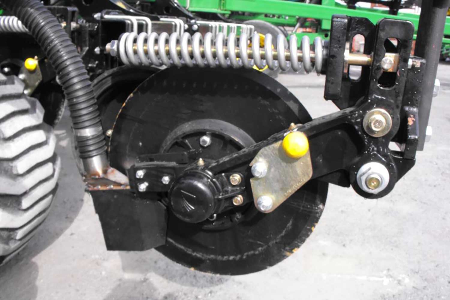Ajustement facile du disque : enlever la cheville d’ajustement de profondeur et laisser descendre la roue de jauge pour un accès sans obstruction au disque !