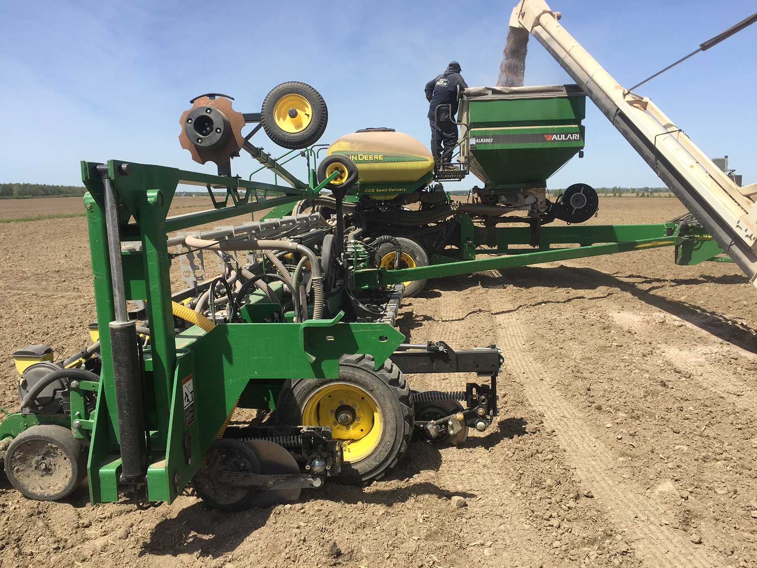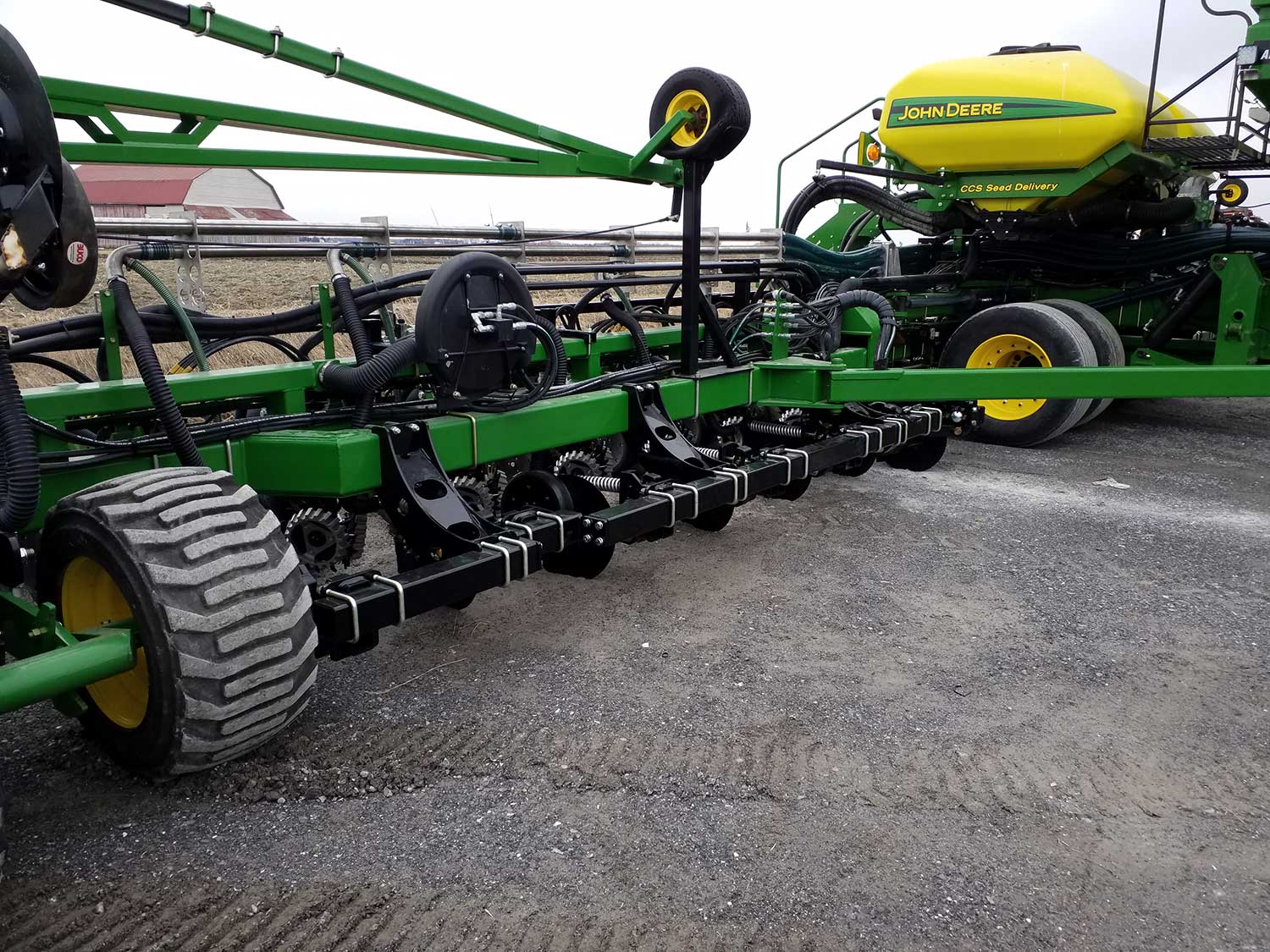 L’applicateur pneumatique ALR3002 pour engrais granulaire ou semence de soya peut être installé sur un planteur de 6, 8, 12, 16, 24, 32 ou 36 rangs. Il permet de reculer facilement dans les pointes de champs et de toujours avoir en vue le système de dosage.