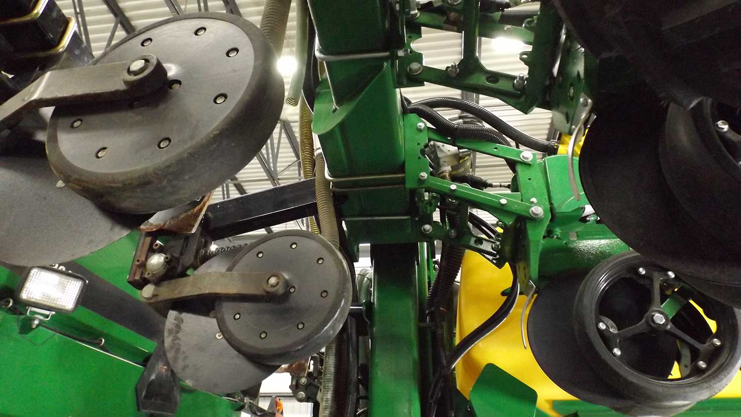 Ajustement facile du disque : enlever la cheville d’ajustement de profondeur et laisser descendre la roue de jauge pour un accès sans obstruction au disque !