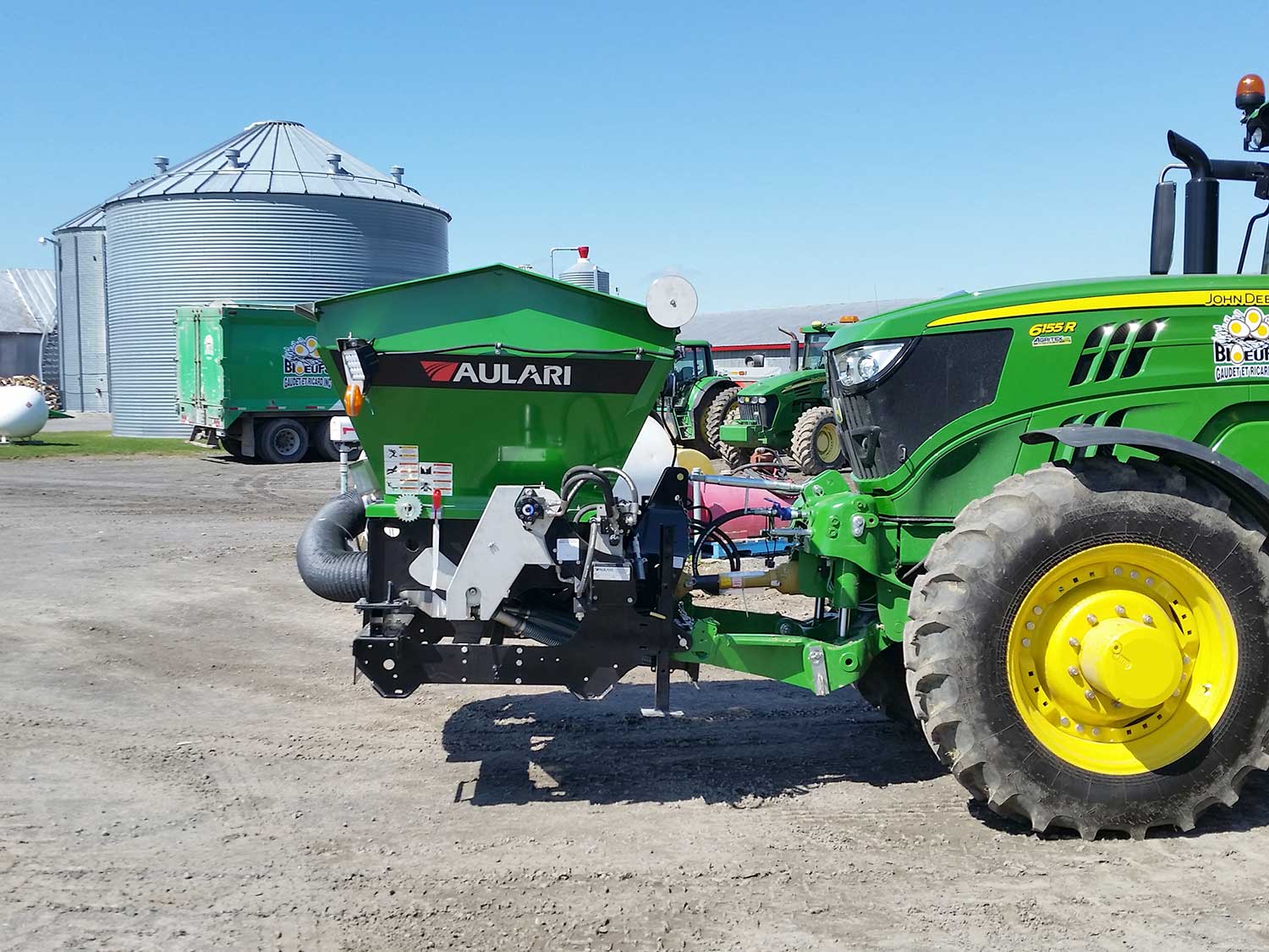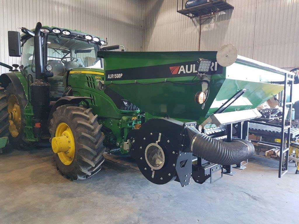 L’applicateur pneumatique ALR1500P pour engrais granulaire et semence peut être monté sur les relevages hydrauliques 3 points avant ou arrière.